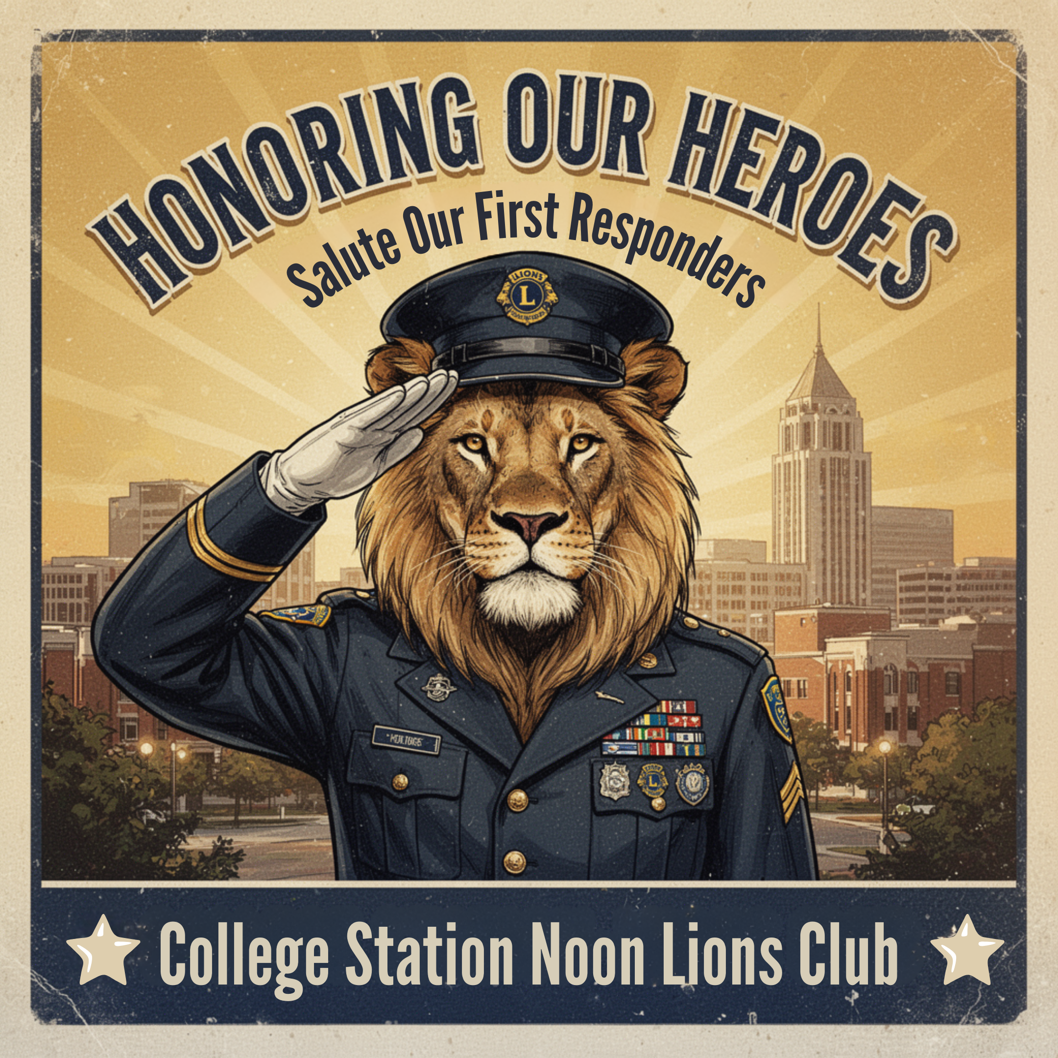 The College Station Noon Lions Club proudly hosts our annual Honoring Our Heroes Luncheon at the Brazos Center—a heartfelt tribute to the brave first responders who serve and protect Brazos County every day.